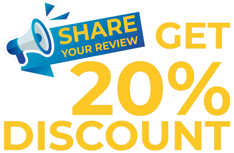 Share a review with a photo or a video on our website or on social media and get a 20% Discount on your next order! Click on the image or here for conditions.